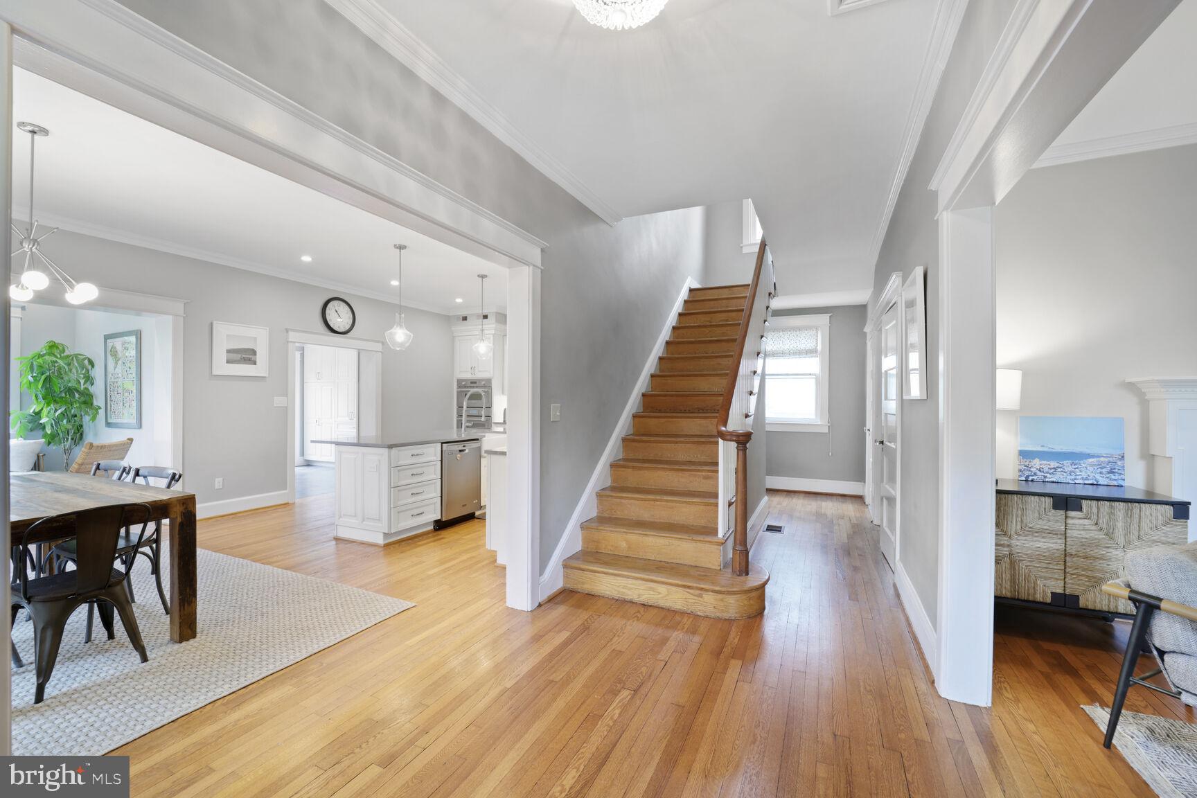 This is a stunner! Over 4500 sq ft of updated charm and grandeur! Loads of original charm along with some great modern updates including a gorgeous opened up kitchen and dining space along with a sunroom and mud room addition creating today's ideal layout. Formal living room with fireplace with another sun-drenched family room and cozy home office or den with fireplace. Upstairs, a reimagined primary suite with a grand en suite bath and a room sized walk in closet. 2 additional spacious bedrooms with a fully updated hall bath as well. The 3rd floor offers a huge skylit teen getaway bedroom, upper floor family room or play space.